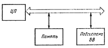 Микросистема состоит из построенного на базе МП центрального процессора (ЦП), основной памяти для хранения программ и данных, а также подсистемы ввода-вывода (ВВ) для связи МС с внешней аппаратурой (рис. 1.1). Задача управления МС возлагается на ЦП, который связан с памятью и подсистемой ВВ через каналы памяти и ВВ соответственно. Центральный процессор считывает из памяти МС команды, которые образуют программу, и декодирует их. В соответствии с результатом декодирования команд он осуществляет выборку данных из памяти МС и портов ввода, обрабатывает их и пересылает обратно в память или порты вывода подсистемы ВВ. Существует также возможность ВВ данных из памяти на внешние устройства и обратно, минуя ЦП. В этом случае обмен данными выполняется через канал прямого доступа к памяти (ПДП) [20, 25, 41], управление которым возлагается на подсистему ВВ. Иногда выделяются средства поддержки режима реального времени, в простейшем случае разделяемые процессором и подсистемой BВ.