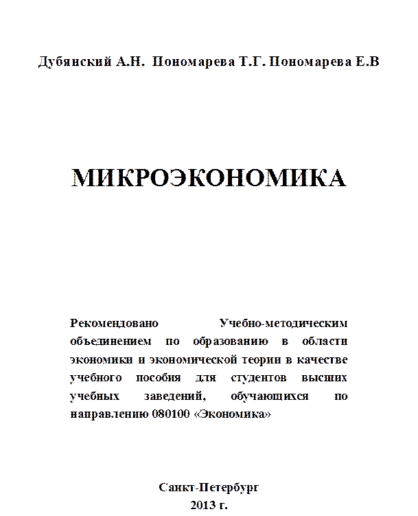 Учебное пособие по дисциплине «Микроэкономика» содержит характеристику изучаемых вопросов, методические рекомендации, перечень вопросов для самопроверки, тестовые задания, глоссарий.