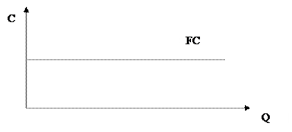 Постоянные издержки (fixed cost, FC) – это издержки, которые фирма несет даже в том случае, если ничего не производит. К таким издержкам могут быть отнесены платежи по кредитам, арендная плата, зарплата постоянных сотрудников фирмы и т.д. Графически эти издержки могут быть представлены следующим графиком (рис. 25).