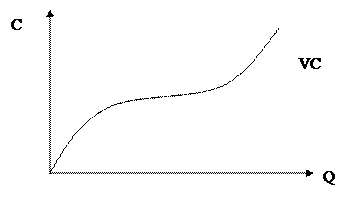 Следующий вид издержек это переменные издержки (variable cost, VC) величина, которых определяется объемом производства фирмы. Если фирма ничего не производит, то эти издержки не возникают. Как уже было отмечено, мы рассматриваем краткосрочный период, в котором почти все факторы производства неизменны кроме одного, например труда. График переменных издержек представлен на рисунке 26.