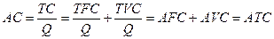 Выделяют в экономической теории еще один вид издержек, а именно средние издержки (average cost), представляющие собой общие издержки, отнесенные к объему выпускаемой продукции. В общем виде их можно записать таким уравнением.