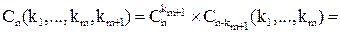 Докажем, что она верна для s = m + 1 (n = k1 +... + km + km+1). В этом случае перестановку с повторениями можно рассматривать как совместный выбор двух объектов: объект A - выбор k m + 1 места для элементов (m + 1)-го типа; объект B - перестановка с повторениями из (n - km+1) элементов. Объект A можно выбрать способом, B - (k1, ..., km) способами. По принципу произведения
