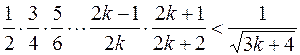 1. Базой индукции в этом случае является проверка истинности утверждения для , т.е. необходимо проверить неравенство . Для этого достаточно возвести неравенство в квадрат: или 63 < 64 – неравенство верно.