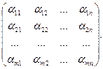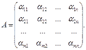 Первый индекс i (i = 1, 2, …m) обозначает номер строки, второй j (j = 1, 2, …n) – столбец матрицы. Матрицу принято обозначать заглавными буквами, например А, В, С и т.д.