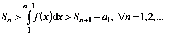 Пусть существует непрерывная, монотонно убывающая, определённая при функция f(x), такая что , т.е. . Тогда, если несобственный интеграл сходится, то ряд тоже сходится; если указанный интеграл расходится, то этот ряд расходится.