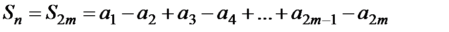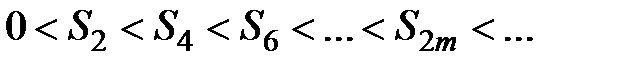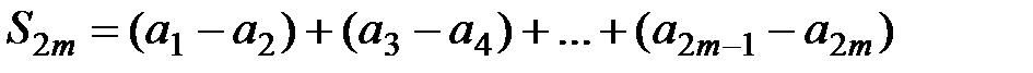 Доказательство. 1) Сначала рассмотрим частичную сумму чётного порядка и запишем её в виде: . В силу условия 2) теоремы 1 все выражения в скобках положительны, тогда сумма и последовательность монотонно возрастает: .