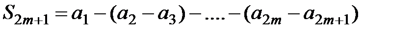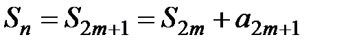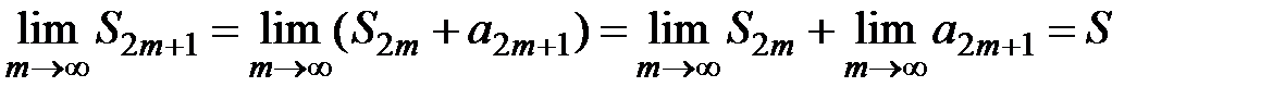 2) Рассмотрим частичную сумму нечётного порядка , которая положительна. Можно показать, что последовательность монотонно возрастает, так как монотонно возрастает последовательность и . Запишем выражение для в виде: , так как все выражения в скобках положительны, то . По условию 3) теоремы 1 , тогда , откуда .