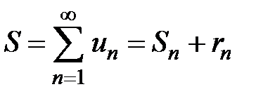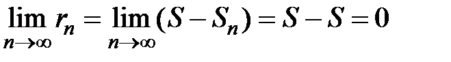 Определение 1. Если числовой ряд сходится и его сумма равна S, а частичная сумма равна Sn, то называется остатком ряда, причём , т.е. остаток сходящегося ряда стремится к 0.