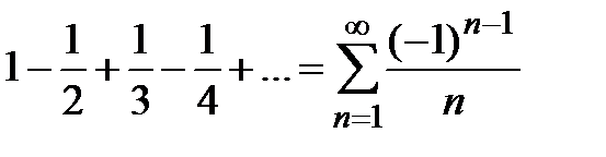 Числовой ряд , члены которого имеют произвольные знаки (+), (−), называется знакопеременным рядом. Рассмотренные выше знакочередующиеся ряды являются частным случаем знакопеременного ряда; понятно, что не всякий знакопеременный ряд является знакочередующимся. Например, ряд − знакопеременный, но не являющийся знакочередующимся рядом.