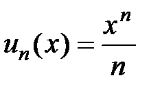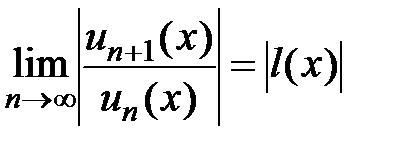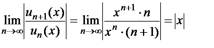 Как находить область сходимости функционального ряда ? Можно использовать признак, аналогичный признаку Даламбера. Для ряда составляем и рассматриваем предел при фиксированном х: . Тогда является решением неравенства и решением уравнения (берём только те решения уравнения, в которых соответствующие числовые ряды сходятся).