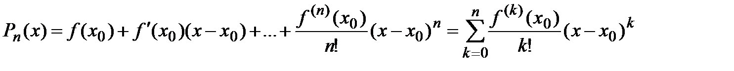 по степеням так, чтобы в точке х0 совпадали значения и , а также значения их производных до ()-го порядка включительно. Тогда считаем, что в окрестности точки х0 такой многочлен будет приближать данную функцию с некоторой точностью.