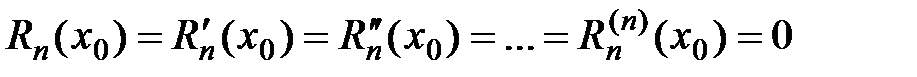 Таким образом, для каждой функции , удовлетворяющей поставленным условиям при , можно найти многочлен Тейлора (в точке х0 функция и многочлен совпадают со своими производными до n-го порядка).
