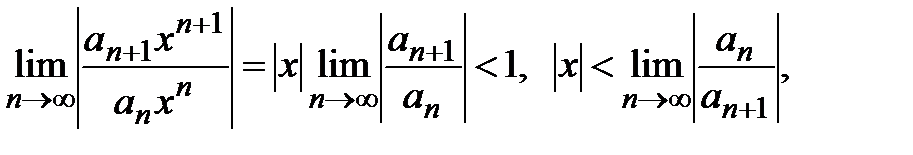 Число R называется радиусом сходимости степенного ряда, если при ряд сходится и притом абсолютно, а при ряд расходится. Радиус сходимости найдем, используя признак Даламбера: