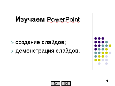 При создании первого слайда воспользуйтесь кнопкой Маркеры .