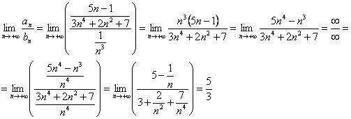 Примечание: когда мы используем предельный признак сравнения, не имеет значения, в каком порядке составлять отношение общих членов, в рассмотренном примере отношение можно было составить наоборот: – это не изменило бы сути дела.