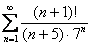 (1) Составляем отношение . Повторяем еще раз. По условию общий член ряда: . Для того чтобы получить следующий член ряда, вместо нужно подставить , таким образом: . (2) Избавляемся от четырехэтажности дроби. (3) Отщипываем семерку от степени. Факториалы расписываем подробно. Как это сделать – см. начало урока. (4) Сокращаем всё, что можно сократить. (5) Константу выносим за знак предела. В числителе раскрываем скобки. (6) Неопределенность устраняем стандартным способом – делением числителя и знаменателя на «эн» в старшей степени.