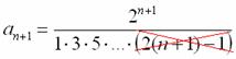 Из разложения мы видим, что у каждого следующего члена ряда добавляется дополнительный множитель в знаменателе, поэтому, если общий член ряда , то следующий член ряда: . Вот здесь часто автоматом допускают ошибку, формально по алгоритму записывая, что