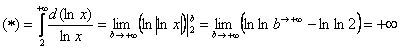 Таким образом, исследуемый ряд расходится вместе с соответствующим несобственным интегралом.
