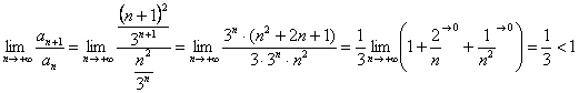 Используем признак Даламбера: Таким образом, исследуемый ряд сходится.