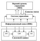 Для современных СЭУ характерно широкое применение ИМС и управляющих ЭВМ при реализации БУ, БКиЗ, что позволяет снять ограничения на сложность их электронной схемы, ведет к улучшению характеристик всего устройства, не вызывая увеличение его объема и массы. В этой связи одной из тенденций развития СЭУ на современном этапе является переход от простых неуправляемых к управляемым, когда с помощью ЭВМ(МПС) осуществляется управление и регулирование его параметров и выходных характеристик. Тогда обобщенную структурную схему технологического объекта с СЭУ можно представить в виде взаимодействия двух каналов – илового и информационного (рис.), которые через систему управления связаны с верхним уровнем управления. Появление в силовом канале технологического объекта (Индукционный нагрев, электропривод, бортовые и наземные системы электроснабжения, электротехнологические системы и другие) управляемого СЭУ позволяет значительно улучшить технико-экономические показатели, экологическую обстановку, расширить функциональные возможности и повысить надежность. Информационный канал (ИВК) – служит для управления потоком энергии от ИП к У, а так же сбора и обработки сигналов о состоянии и функционировании системы, контроля и диагностики. Информац. Канал может взаимод-ть со всеми элем-ми силового канала, а также с оператором и системой верхнего управления.