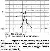 Во многом решая проблему высоковольтных применений, IGBT тоже имеют врожденный дефект, и он носит название «хвост» (tail). Этот эффект объясняется наличием остаточного тока коллектора после выключения транзистора из-за конечного времени жизни неосновных носителей в области базы PNP-транзистора (см. рис. 2). Поскольку база недоступна, ускорить время выключения схемными методами нельзя.