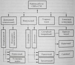 Большое разнообразие схем и режимов работы СЭУ определяет отличие причин, механизмов отказов СИП, а также количественных показателей их надежности. Однако с точки зрения физики отказа, особенности режимов работы СПИ во всех девяти группах СЭУ можно свести к четырем базовым режимам: длительному (статический), импульсному, режиму ударных токов и режиму емкостной коммутации. В результате любой частный режим работы СПП можно представить как совокупность нескольких основных (базовых) режимов
