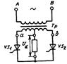 Привязка импульсов к сетевому напряжению осуществляется входным устройством ВУ. Функции ВУ в данной СУ может выполнять трансформатор со средней точкой, вторичные полуобмотки которого создают два синусоидальных напряже­ния, сдвинутых между собой на угол к. Напряжения с каждой