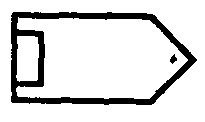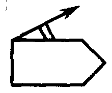 Примечание. С целью пространственной ориентации символа судна (катера, корабля и пр.) часть его контура, соответствующего положению носа судна, следует показывать утолщенной линией.
