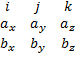 Векторное произведение двух векторов равно обобщенному определителю, первая строка i, j, k, вторая – координаты a и b.