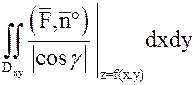 Пусть незамкнутая поверхность S взаимно − однозначно проектируется на плоскость XOY в область Dxy. В этом случае поверхность S можно задать уравнением и поток П вычисляется по формуле