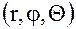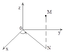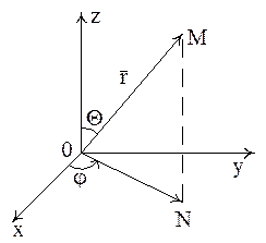 Пример 2.Поставим в соответствие каждой точке M(x,y,z) тройку чисел , где r – расстояние от точки M до начала координат, φ – угол между положительным направлением оси ОХ и вектором (см. рис.17), Θ – угол между положительным направлением оси 0Z и вектором . Здесь точка N - проекция точки M на плоскость X0Y.