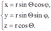 Упорядоченная тройка чисел называется сферическими координатами. Связь декартовых координат со сферическими определяется формулами: