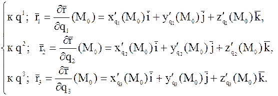Итак, основное отличие криволинейных координат от декартовых состоит в том, что в декартовой системе векторы постоянны во всех точках пространства и равны соответственно . Во всякой другой системе они будут, вообще говоря, изменять свои направления при переходе от точки к точке.