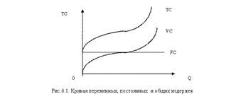 Графически общие издержки получают путем суммирования кривых постоянных и переменных издержек (рис.6.1).