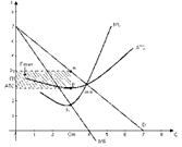 На рис. 4.1 изображена модель чистой монополии, на котором видно, что положение равновесия фирмы определяется точкой K (точка пересечения MC и MR). Проведя вертикаль от точки K до кривой спроса D, определим цену (P1), которая установится на уровне A. Заштрихованный прямоугольник показывает величину монопольной прибыли.