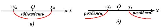 (рис 8.1а), цей ряд збігається абсолютно, а якщо х1 - точка розбіжності ряду, то в усіх точках, розташованих поза інтервалом