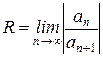З ознаки збіжності Даламбера радіус збіжності степеневого ряду може бути визначений співвідношенням