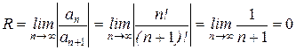 3.Ряд розбігається на усій числовій прямій, окрім точки х = 0, оскільки радіус збіжності .