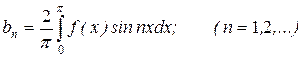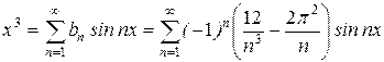 Задана функція є непарною, отже, коефіцієнти Фур'є шукаємо у виді: