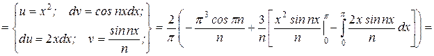 Приклад.Розкласти в ряд Фур'є періодичну функцію з періодом T = 2p на відрізку [-p; p].