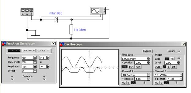 5.1. Собрать схему однополупериодного выпрямителя.