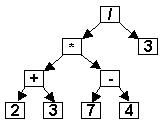 В качестве примера рассмотрим выражение ((2+3)*(7-4))/3. Порядок вычисления выражения можно изобразить в виде дерева на рис. 24.