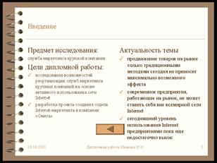 Создание новой презентации на примере дипломной работы на тему: "Маркетинг в сети Internet"