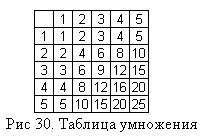 Мы не рассматриваем таблиц с двумя входами типа таблицы умножения (рис.30), в которых искомая величина лежит на перекрестии строки и столбца. Строку таблицы называют также записью или кортежем. Столбец также называют полем или атрибутом. Поле или группа полей, по которым выполняется поиск данных в таблице, называется ключом. Если в таблице не может существовать более одной записи с данным значением ключа, то такой ключ называют первичным. Другие ключи называют непервичными или вторичными. В телефонном справочнике роль первичного ключа может играть, например, номер телефона. Фамилия не может быть первичным ключом, так как возможно существование однофамильцев. Все операции в таблице задаются по отношению к ключу, а выполняются над всей записью. К типичным операциям над таблицей относятся: