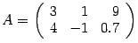Обычно принято обозначать матрицы большими буквами, а саму таблицу чисел заключать в круглые скобки. Например, -- матрица размеров , -- матрица размеров , или другими словами, матрица-столбец, -- матрица размеров , или матрица-строка.
