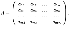 Если элементы матрицы обозначаются буквами, то для этого обозначения используется та же буква, что и для обозначения матрицы, только не большая, а малая, и эта буква снабжается двумя индексами. Например, матрицу размеров можно записать в виде