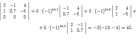 Решение. Воспользуемся разложением по третьей строке, так выгоднее, поскольку в третьей строке два числа из трех -- нули. Получим