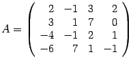 Процесс получения нулей вместо первых элементов строк продолжим дальше. Наконец, первую строку умножим на число и прибавим к последней строке. В результате получается матрица, обозначим ее , которая имеет вид