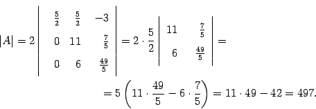 По тому же алгоритму считаем определитель матрицы порядка 3, стоящий справа. Первую строку оставляем без изменений, ко второй строке прибавляем первую, умноженную на число :