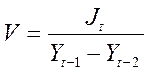 где V – акселератор; J – чистые инвестиции в период t – год, когда были осуществлены инвестиции; Y — потребительский спрос, доход или реальный ВВП; t-1 и t-2 — предшествующие годы.